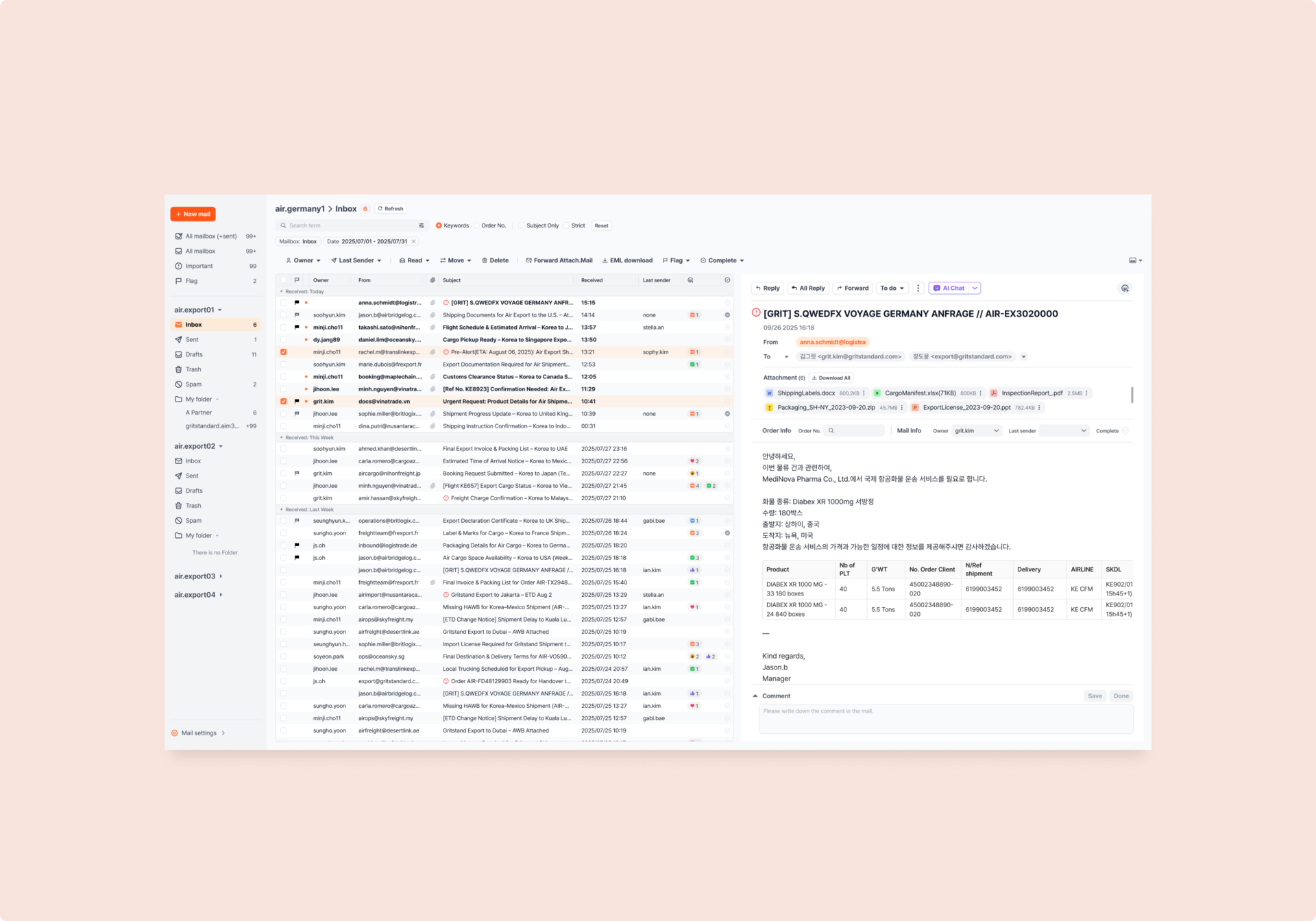 물류 업무에 최적화된 이메일 협업 툴로,